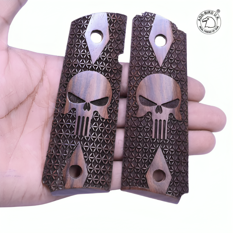 Punisher Skull Wooden Grips for Colt 1911 – Tactical Texture | GunGuru.in